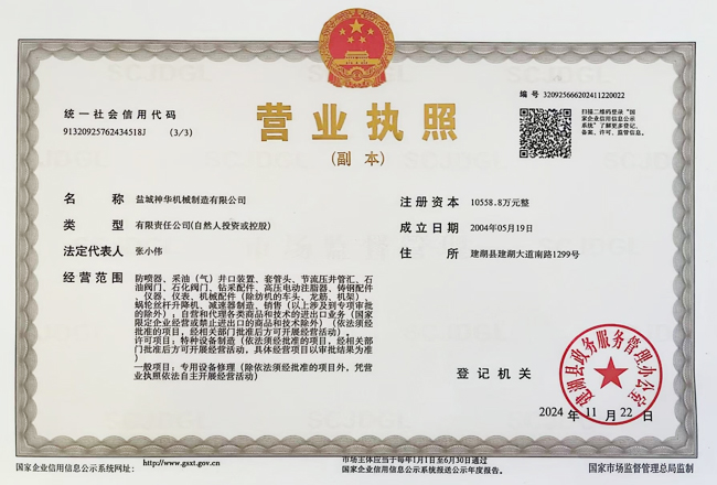 鹽城神華機(jī)械制造有限公司為中國(guó)石油、石化、海洋物資裝備(集團(tuán))總公司的網(wǎng)絡(luò)成員單位,公司注冊(cè)資金10558.8萬元整,公司通過了ISO9001國(guó)際質(zhì)量體系認(rèn)證,取得了中國(guó)船級(jí)社船舶產(chǎn)品和配件使用證書。